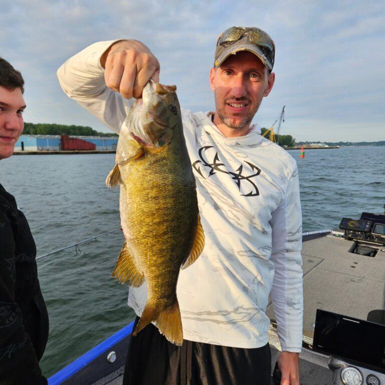 With this warm-up, Lake Erie’s main lake temperatures have climbed into the low 70s, and fish are responding. The bass are wrapping up their spawn and transitioning into more classic early summer patterns. We’re seeing smallmouth start to slide off into deeper water, which only gets better as we move into July.